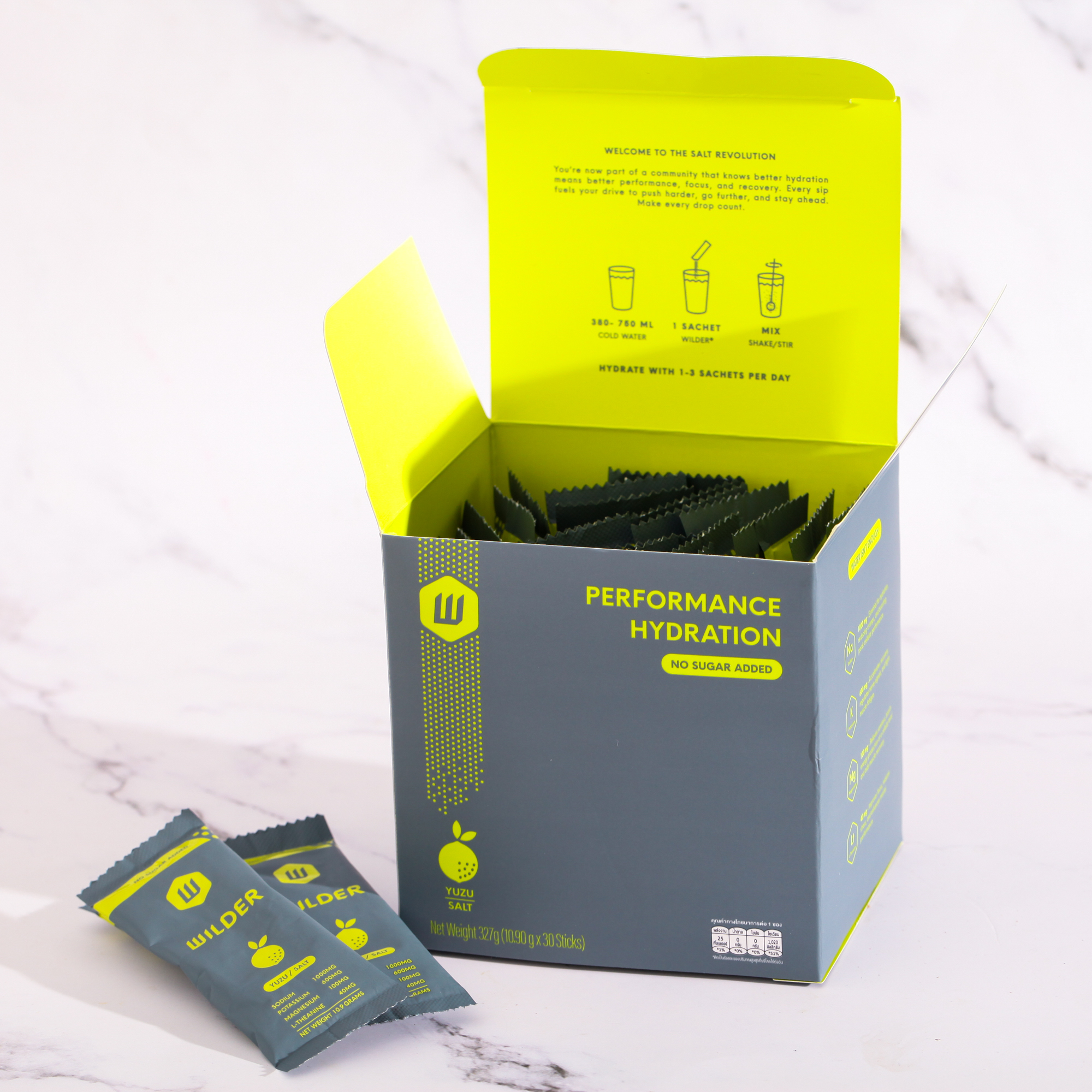 Looking for an electrolyte mix that's been thoughtfully engineered to have just the right balance of sodium, potassium, and magnesium? Well, you no longer have to import it! The team from Wilder Nutrition are making a world-class one right here in Thailand 🇹🇭 You don't have to be a performance athlete to benefit from a high-quality electrolyte boost in Bangkok - our humid climate makes it that much more difficult to stay hydrated, and supplementing with a well-balanced electrolyte like Wilder can make a world of difference 💪 This is their delicious Yuzu flavor, with two more in the works for the near future. Each sachet contains 1,000mg of sodium 100mg of magnesium, and 600mg of potassium, and 40mg of l-theanine, the "calm" amino acid found in green tea that also helps with focus. How to consume: Mix 1 sachet with 750ml of cold water (or more, to taste) Ingredients: Salt (trisodium citrate, sodium chloride), citric acid, natural yuzu flavor, potassium chloride, malic acid, magnesium amino acid chelate, steviol glycosides from stevia, l-theanine